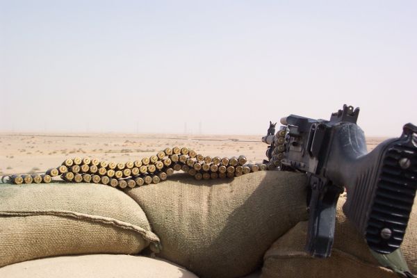 No stag as paras are on, lots of helicopters. Spent the day escorting Cpn B up north to investigate a couple of sites. Lots of spare/dumped ammo at the first one - an old Iraqi infantry base, crossed Euphraties (see piccies!). Spoke to three locals passing by while on fire support with GPMG.