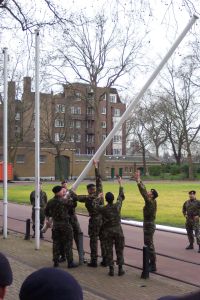 It is traditional before leaving to take a unit photo so the narrator of the documentary that is sure to be made has something to refer to (And something to mark up with big black crosses). Suitable steps were found in the Duke of Yorks buildings, outside the new WD TAC, but flag poles had to be taken down:
