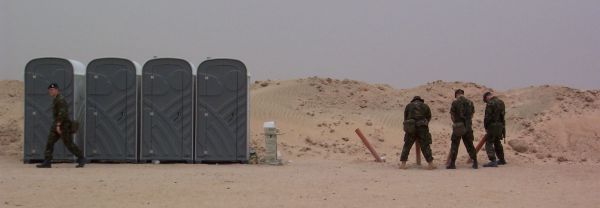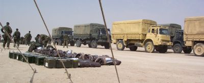 We were reasonably quickly shipped out to a camp in 'Camp Eagle', a vast holding area of small groups of tents surrounded by 'berms', an wall of sand raised by bulldozer. Quiet speach from JNBCR colonel ("you're not on exercise now"), no mobiles, no satphones, no email aaargh!
