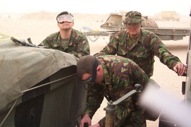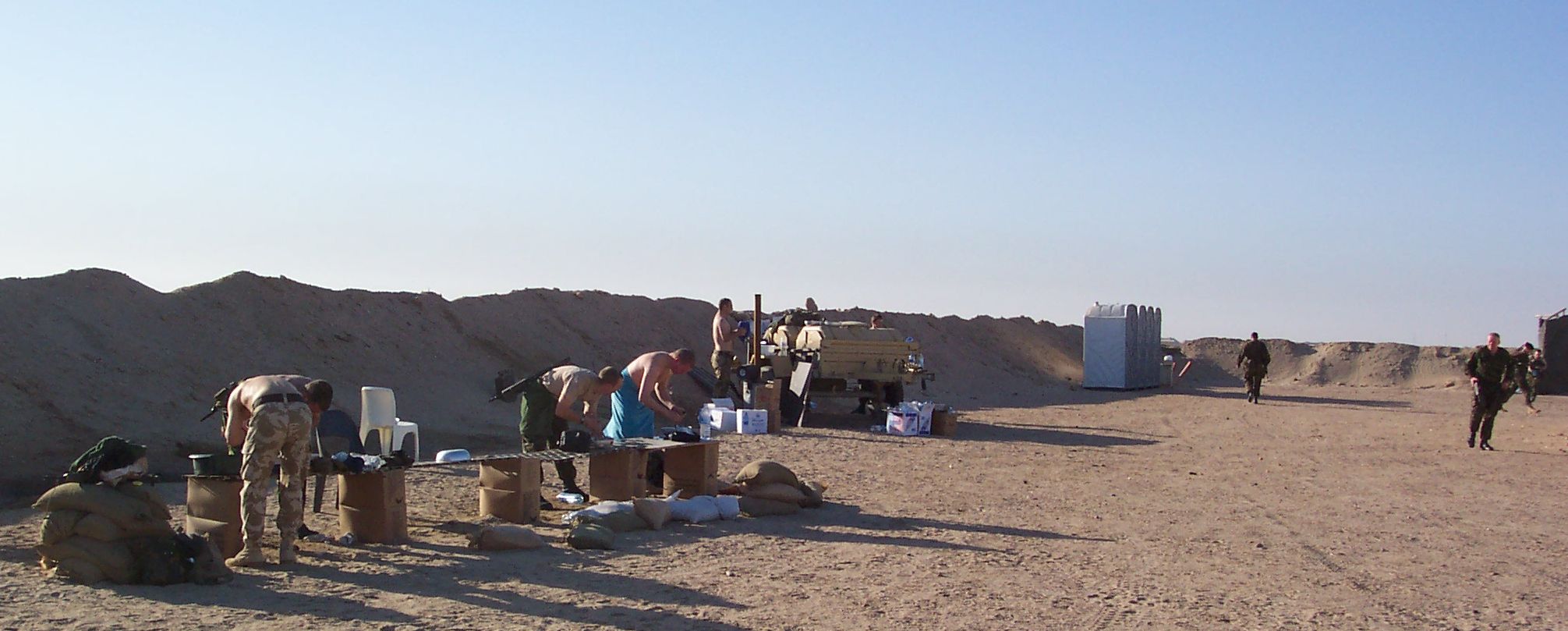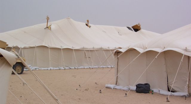 Our first camp was shared with some of JNBCR (not sure which bits), quite crowded with 26 of us in a tent 10m x7.. The vehicles having been shipped long before we left, arrived a few days after we did. We ran some decon exercises to demonstrate our ability to JNBCR management. Initially both sides came away with a firm belief in the others incompetence, but this softened after a few days contact.