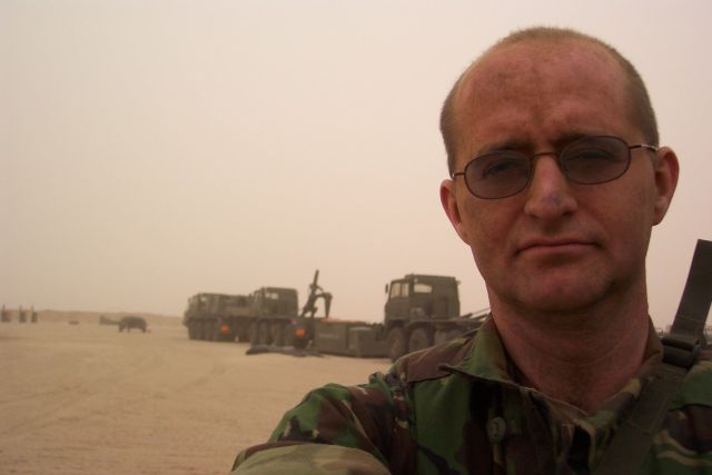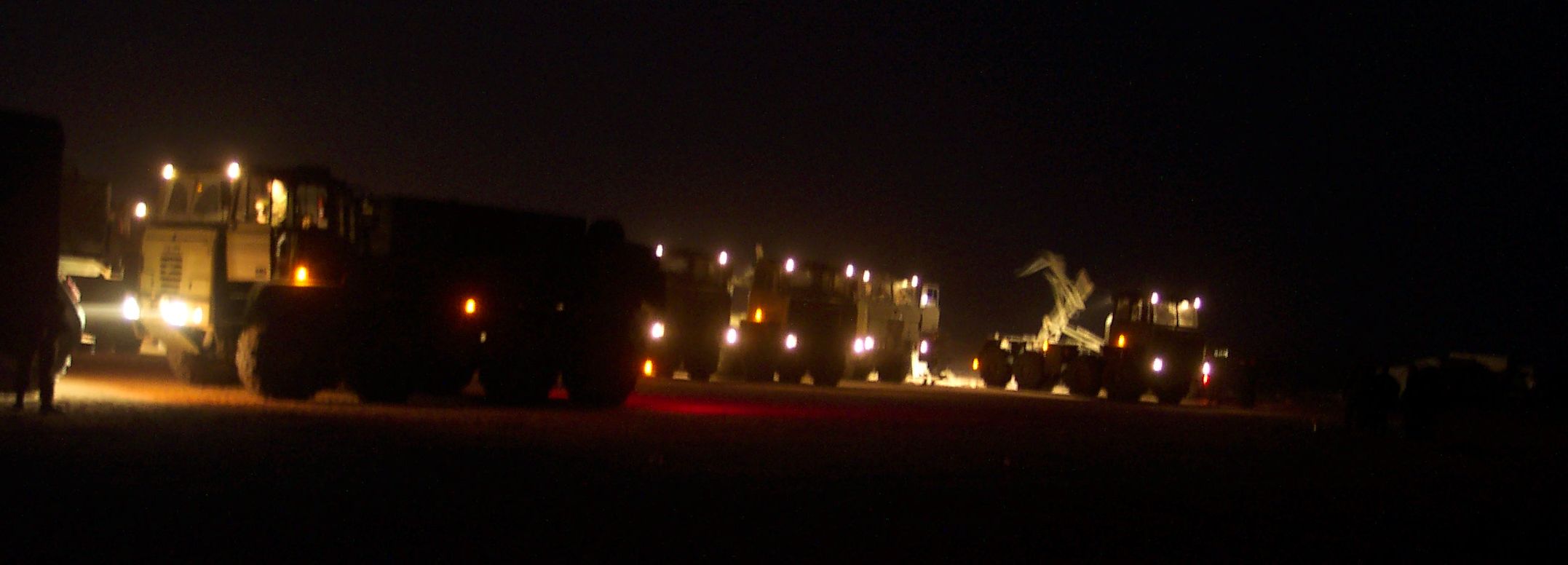 Out 'in the field' for the evenings, just behind the berms, getting used to living off the vehicles. I can hear artillary in the background.